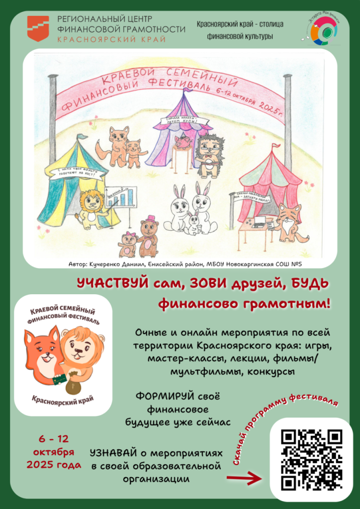Приглашаем детей и родителей принять участие в VI Краевом семейном финансовом фестивале, который пройдет с 6 по 12 октября 2025 года.